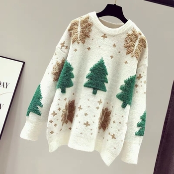 Nordic Style Christmas Snowflake Jacquard Sweater Lazy Loose BF Style