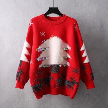Vintage Christmas Elk Jacquard Crewneck Sweater for Women - Bestseller on Cross-Border E-Commerce